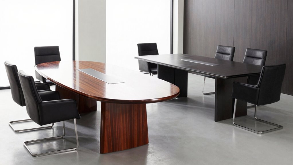 Choosing between these two shapes ultimately depends on your priorities. If you want a design that promotes interaction and a modern vibe, a boat-shaped table with durable, attractive materials could be your best bet. Conversely, if you prefer a straightforward, adaptable piece that emphasizes formality and maximizes seating, a rectangular table may suit your needs better. Whichever you pick, focus on material durability to ensure your investment lasts and aesthetic appeal to keep your meeting space looking sharp. By balancing these factors, you’ll select a conference table that not only functions well but also elevates your entire meeting environment.
