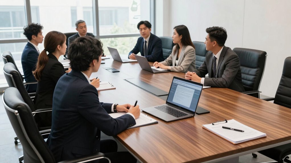 You should review and adjust seating plans regularly, especially before each meeting, to guarantee proper seating etiquette and accommodate cultural considerations. Factors like team changes, new participants, or evolving meeting goals require updates. By staying attentive and flexible, you foster a respectful environment, promote effective communication, and prevent overcrowding or discomfort. Regular reviews help you maintain a well-organized, culturally sensitive setup that supports productive, inclusive discussions.