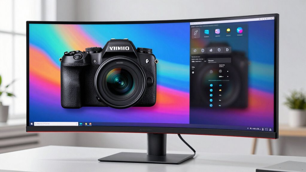 Screen scaling can impact color accuracy on ultrawide monitors by affecting how colors are rendered, especially if your display isn’t properly calibrated. When scaling isn’t precise, it can lead to color inconsistencies, making your images look off. To avoid this, you need good color calibration tools and verify hardware compatibility, so scaling doesn’t interfere with accurate color representation, keeping your workflow sharp and true to the original content.