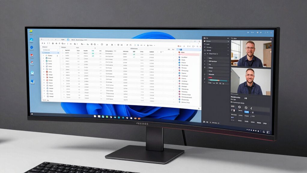 You might think a bigger monitor always boosts multitasking efficiency, but it’s not just about size; it’s about how you use screen real estate. Larger ultrawide monitors give you more space to spread out multiple windows, reducing constant switching. This setup improves your ability to manage several tasks simultaneously, making work smoother and more efficient. So, a well-chosen size can genuinely enhance your multitasking, if it fits your workflow.