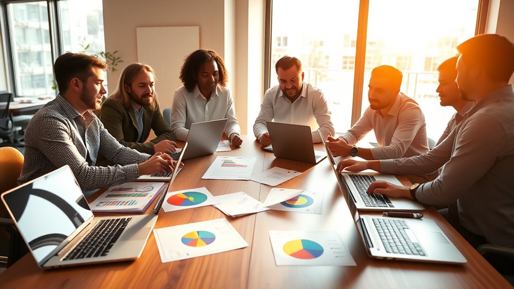 To divide shares fairly, consider each founder’s roles, expertise, and contributions like intellectual property or capital. Communicate openly about expectations and use valuation methods that account for tangible and intangible assets. Incorporate vesting schedules to promote commitment and revisit splits as your startup grows. Cultural factors and partnership dynamics also matter. By focusing on fairness and transparency now, you’ll build a solid foundation — and there’s more to explore for achieving a balanced equity split.