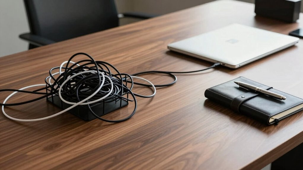 Effective cable management boosts professionalism and safety at your executive desk.