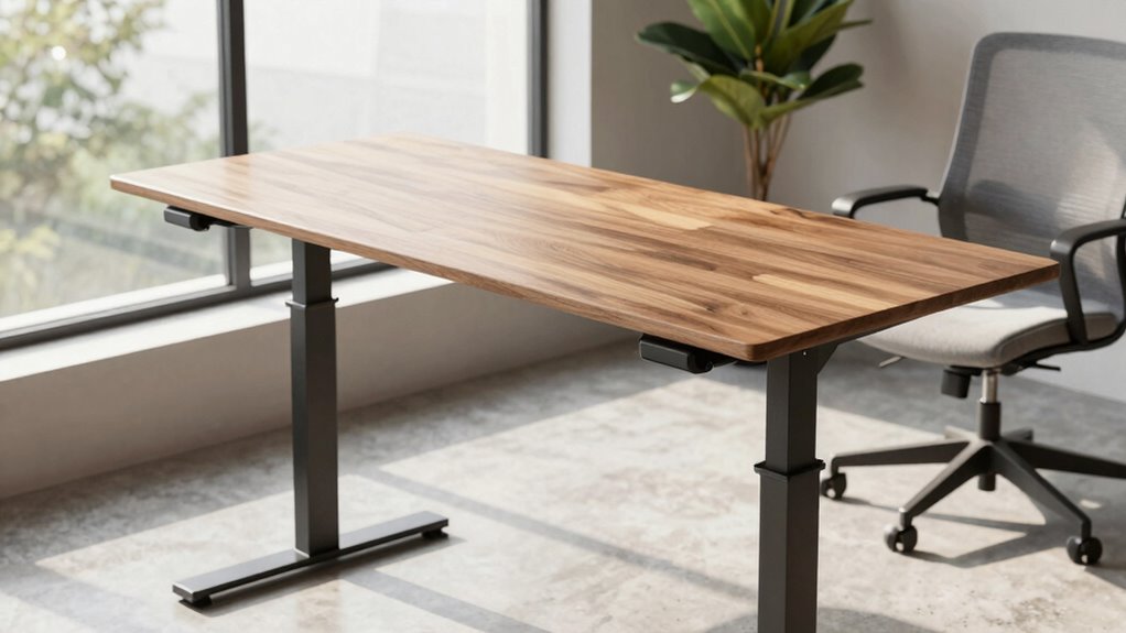 Have you ever worried about your standing desk wobbling while you work? It’s a common concern, especially if you rely on your desk for long hours. Stability isn’t just about avoiding distractions; it plays an essential role in ensuring you get the most ergonomic benefits from your setup. When your desk wobbles, it can cause strain on your wrists, shoulders, and neck, leading to discomfort and even long-term injury. That’s why, instead of getting caught up in fancy presets or high-tech features, you should prioritize a desk with solid stability. A stable desk provides a firm foundation, allowing you to focus on your work without constantly adjusting or worrying about balance issues. Additionally, desk stability directly impacts the safety and durability of your setup, preventing premature wear and potential damage over time. The importance of adjustable height cannot be overstated, but it’s equally necessary that the desk’s stability remains uncompromised at every setting. If your desk wobbles when you switch from sitting to standing, it defeats the purpose of having that flexibility. You want a desk that maintains its sturdiness regardless of the height. When you can confidently raise and lower your desk, you’re more likely to switch between sitting and standing throughout the day, which promotes better posture and reduces fatigue. However, all these ergonomic benefits are nullified if the desk isn’t stable enough to support your movements. Proper construction and materials are essential for ensuring long-term stability and durability, especially in adjustable models. Investing in a desk with good stability means paying attention to its construction and materials. Look for desks made with high-quality, reinforced frames that won’t shake or wobble under pressure. Features like wider bases, anti-slip pads, and robust locking mechanisms for adjustable height settings contribute considerably to overall stability. Additionally, choosing a desk with reinforced frames can significantly improve its stability by providing extra support and resistance to wobbling. It’s also wise to consider the design and engineering of the desk, as well-designed models are often engineered to minimize wobble even at maximum height. Good Stability is often achieved through thoughtful design and high-quality construction, which can prevent issues even after prolonged use. The key is to choose a desk where the adjustable height mechanism doesn’t compromise its sturdiness. A well-designed, stable standing desk allows you to adopt proper ergonomics effortlessly—your keyboard remains steady, your monitor stays at eye level, and your posture stays aligned. In the end, stability isn’t just a minor detail; it’s the foundation that supports all the ergonomic benefits you seek from a standing desk. Fancy presets and high-tech features may be appealing, but if your desk isn’t stable, they’re useless. Prioritize a sturdy, well-built desk that offers adjustable height without wobbling, and you’ll enjoy a healthier, more comfortable working experience. When your desk remains firm and reliable, you’re free to focus on what truly matters: your work and your well-being.